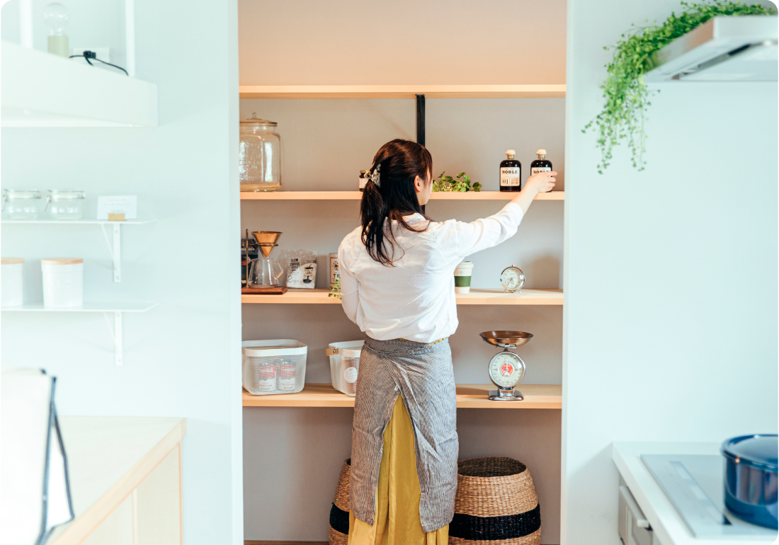 パントリーなどでの収納もしやすいです。