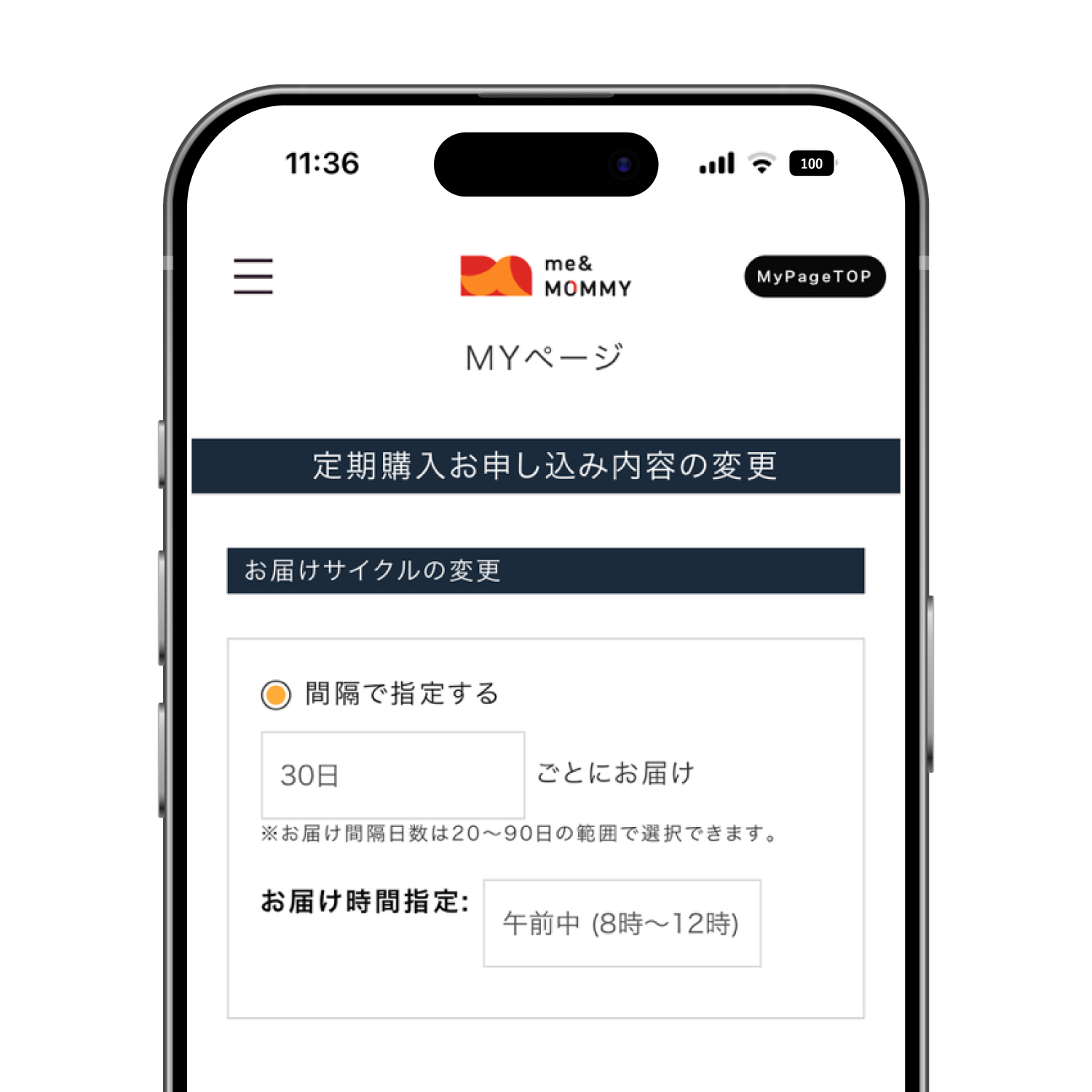 [お届けサイクルの変更]https://cart.me-mom.jp/mypage/