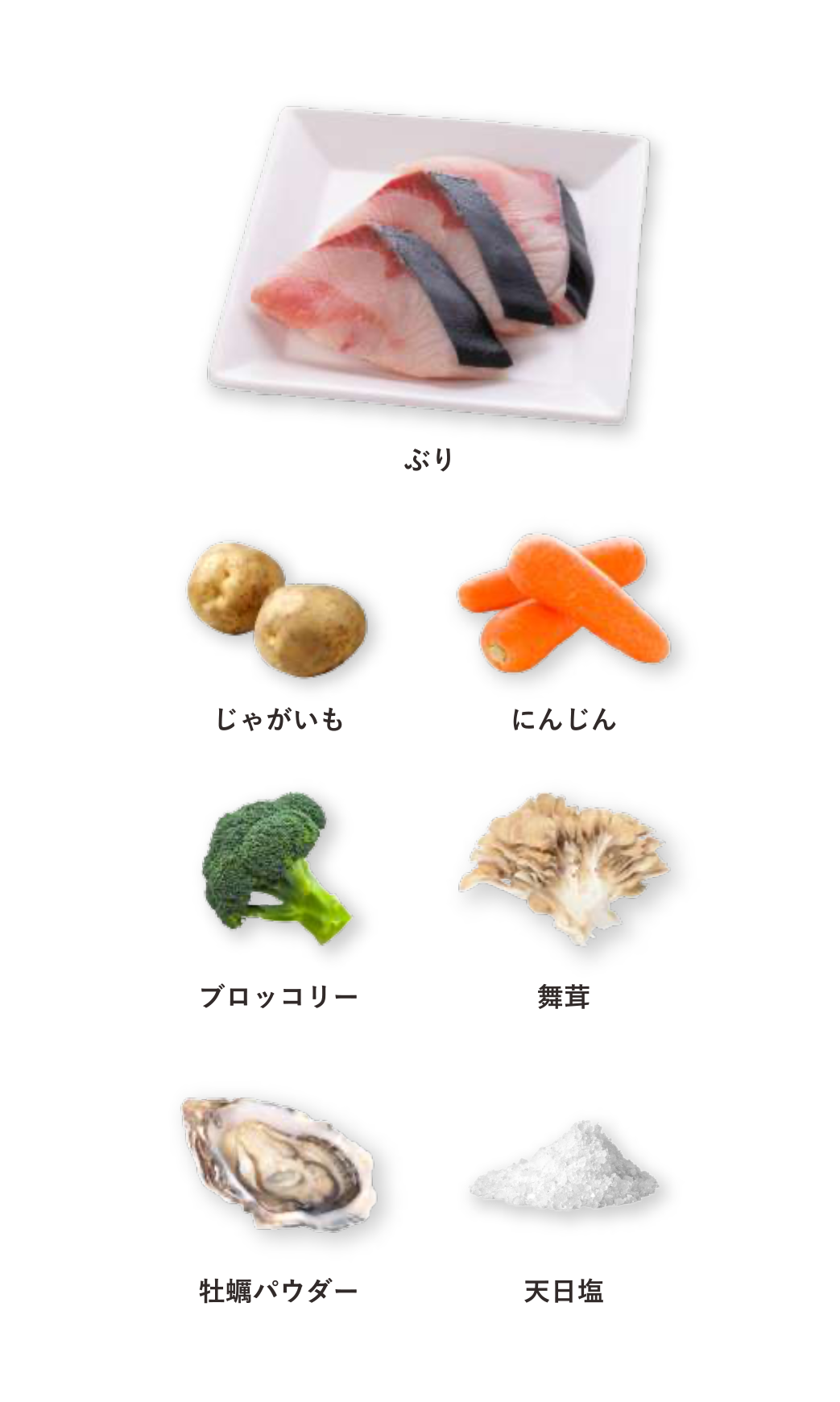 ※画像はぶりと牡蠣deクラムチャウダーの原材料です。