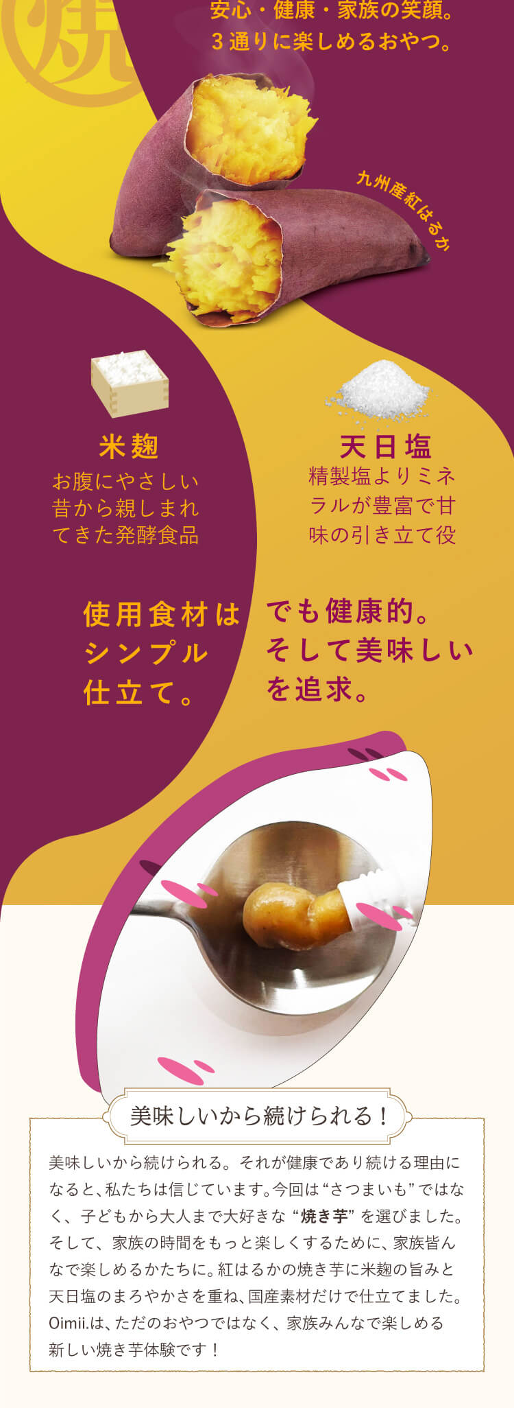 Oimii.は、ただのおやつではなく、“家族みんなで楽しめる新しい焼き芋体験”です。